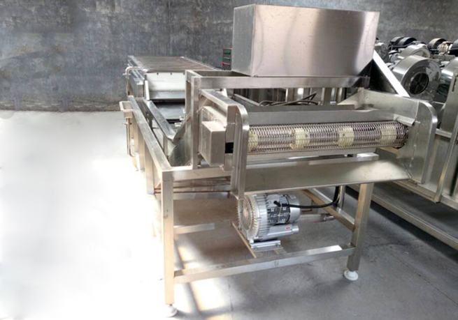 該流水線主要由清洗段、提升輸送段、震動瀝水段以及風(fēng)干除水段組成,主要用于袋裝食品的高低溫殺菌后,產(chǎn)品表面油污、油漬的連續(xù)清洗及風(fēng)干。